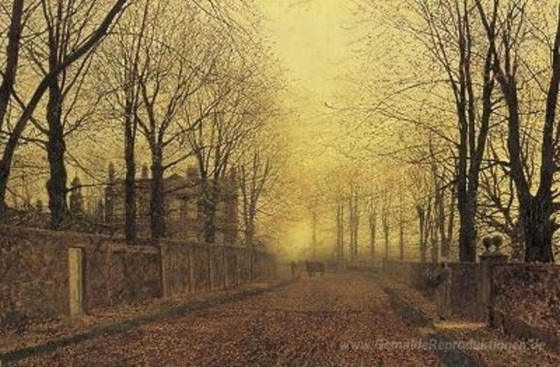 Wir bieten Ihnen eine handgefertigte Reproduktion auf Leinwand des berühmten Kunstwerks 'Herbst' von John Atkinson Grimshaw, aus dem Reproduktionsmuseum.