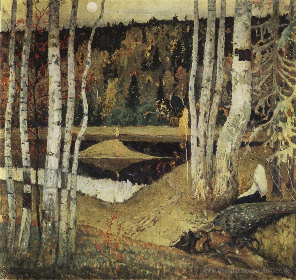 Wir bieten Ihnen eine handgefertigte Reproduktion auf Leinwand des berühmten Kunstwerks 'Herbstlandschaft' von Mikhail Nesterov, aus dem Reproduktionsmuseum.