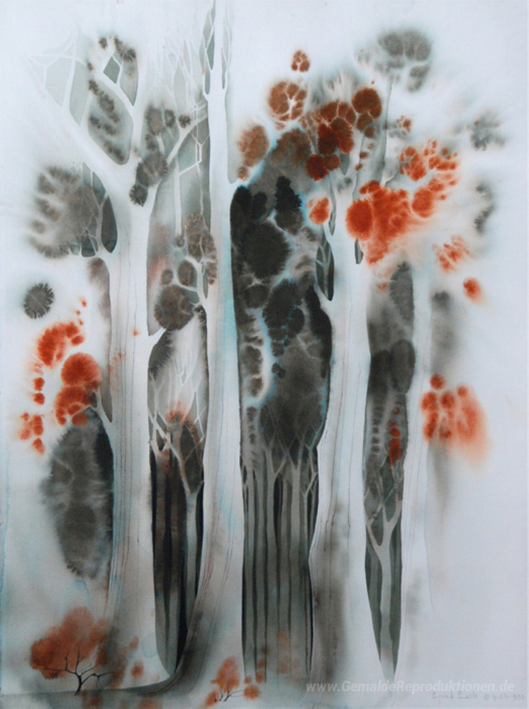 Die Verwendung raffinierter Maltechniken und die detailreiche Gestaltung verleihen dem Kunstwerk eine lebendige Tiefe, die jede Umgebung bereichert. Herbstwald strahlt eine ruhige Atmosphäre aus und lädt dazu ein, sich der Natur und ihrer Schönheit zu verbinden. Ob im Wohnraum oder im Büro, dieses Meisterwerk von Eyvind Earle wird zum Blickfang und verleiht jedem Raum eine einladende und inspirierende Note.