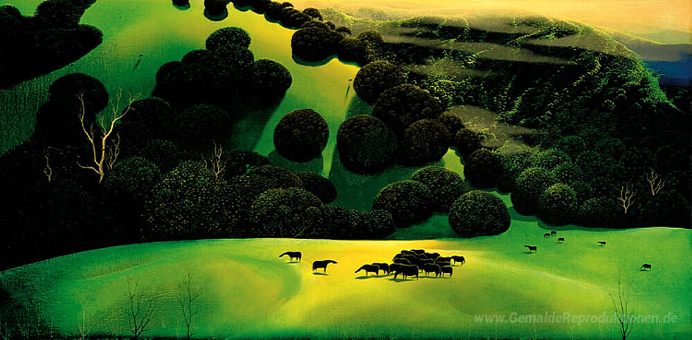 Willkommen in unserer erlesenen Galerie von Ölgemälden, wo Kunst und Leidenschaft aufeinandertreffen. Unsere Kollektion unter anderem umfasst das beeindruckende Werk Herde von Pferden, geschaffen von dem renommierten Künstler Eyvind Earle. Earle, bekannt für seinen einzigartigen Stil und die Liebe zur Natur, verbindet in seinen Gemälden harmonische Farbpaletten mit filigranen Details, die die Betrachter in eine träumerische Welt entführen.