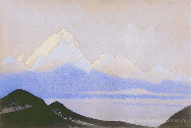 Wir bieten Ihnen eine handgefertigte Reproduktion auf Leinwand des berühmten Kunstwerks 'Himalaya [Erd- und Himmels]' von Nicholas Roerich, aus dem Reproduktionsmuseum.