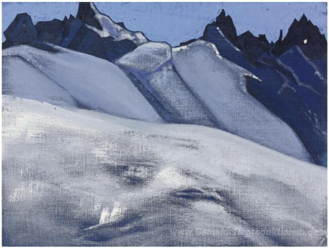 Wir bieten Ihnen eine handgefertigte Reproduktion auf Leinwand des berühmten Kunstwerks 'Himalaya' von Nicholas Roerich, aus dem Reproduktionsmuseum.