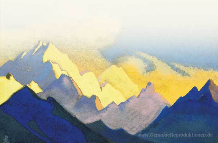 Wir bieten Ihnen eine handgefertigte Reproduktion auf Leinwand des berühmten Kunstwerks 'Himalaya. Varicoloured Schnee.' von Nicholas Roerich, aus dem Reproduktionsmuseum.