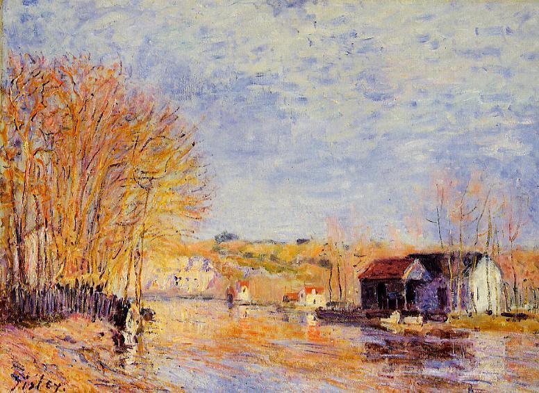 Wir bieten Ihnen eine handgefertigte Reproduktion auf Leinwand des berühmten Kunstwerks 'Hochwasser an Moret auf Loing' von Alfred Sisley, aus dem Reproduktionsmuseum.