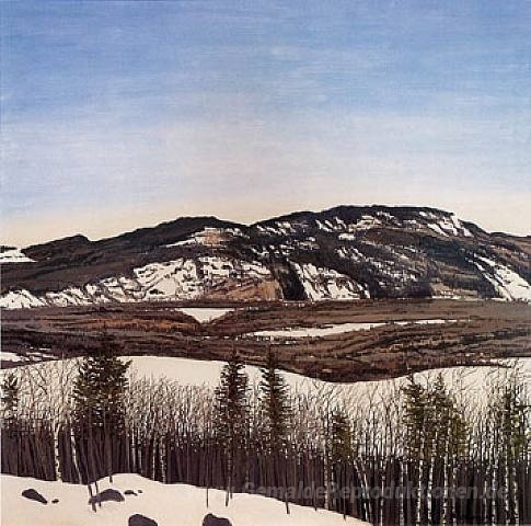 Wir bieten Ihnen eine handgefertigte Reproduktion auf Leinwand des berühmten Kunstwerks 'Hoffen, Megunticook' von Neil Welliver, aus dem Reproduktionsmuseum.