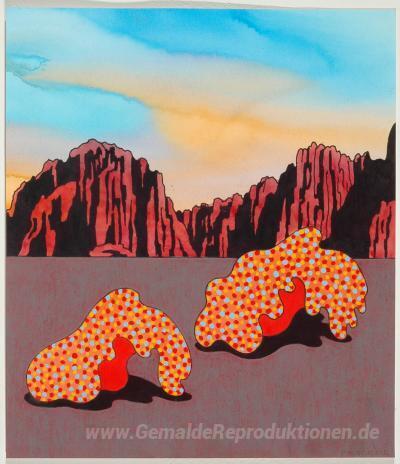 Wir bieten Ihnen eine handgefertigte Reproduktion auf Leinwand des berühmten Kunstwerks 'Hot Bottoms' von Kenneth Price, aus dem Reproduktionsmuseum.