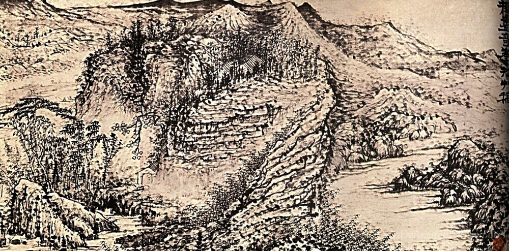 Wir bieten Ihnen eine handgefertigte Reproduktion auf Leinwand des berühmten Kunstwerks 'Ich ging durch alle fabelhafte Berge und Ich reparierte die Skiz' von Shitao, aus dem Reproduktionsmuseum.