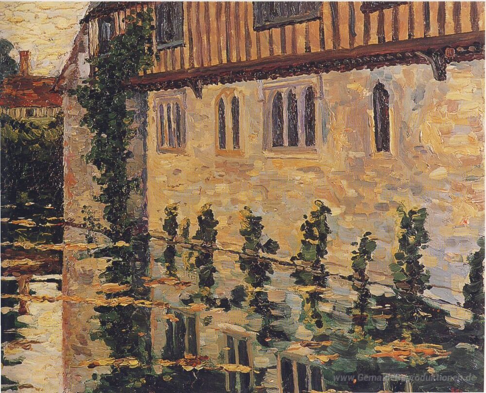 Wir bieten Ihnen eine handgefertigte Reproduktion auf Leinwand des berühmten Kunstwerks 'Ightham Moat' von Winston Churchill, aus dem Reproduktionsmuseum.