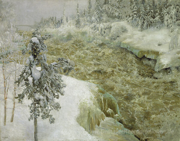 Wir bieten Ihnen eine handgefertigte Reproduktion auf Leinwand des berühmten Kunstwerks 'Imatra im Winter' von Akseli Gallen-Kallela, aus dem Reproduktionsmuseum.