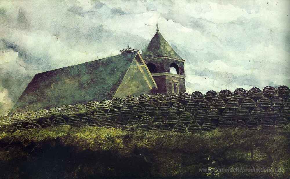 Wir bieten Ihnen eine handgefertigte Reproduktion auf Leinwand des berühmten Kunstwerks 'Insel-Kirche' von Jamie Wyeth, aus dem Reproduktionsmuseum.