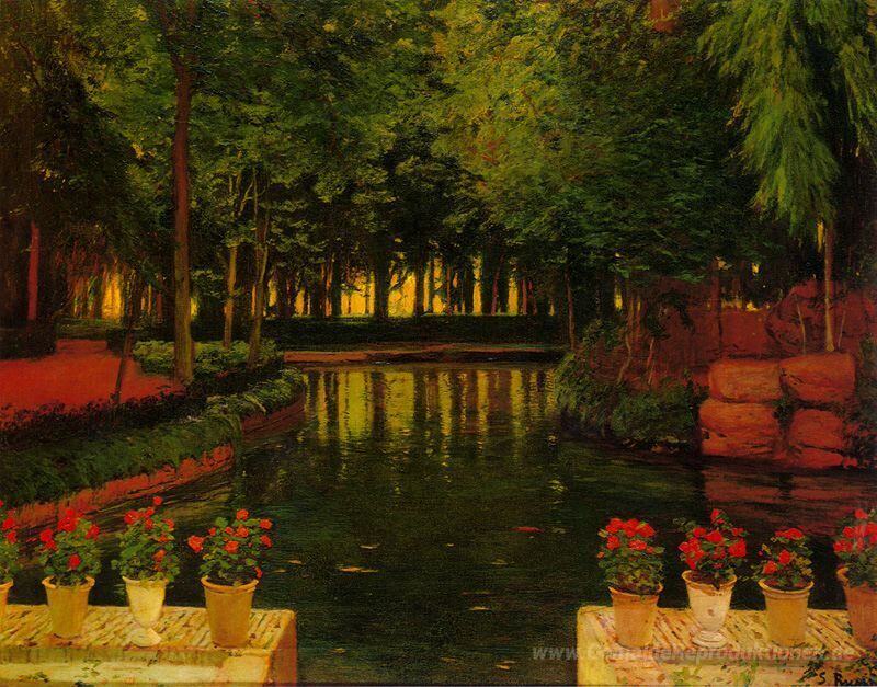 Wir bieten Ihnen eine handgefertigte Reproduktion auf Leinwand des berühmten Kunstwerks 'Jardines de Aranjuez 2' von Santiago Rusinol, aus dem Reproduktionsmuseum.
