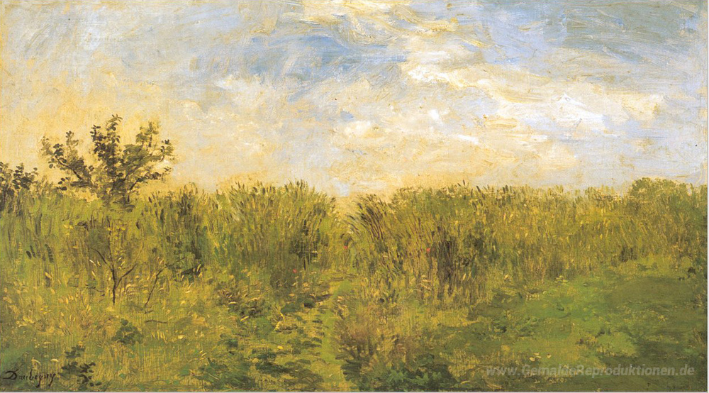 Wir bieten Ihnen eine handgefertigte Reproduktion auf Leinwand des berühmten Kunstwerks 'Junge Mais' von Charles-Francois Daubigny, aus dem Reproduktionsmuseum.