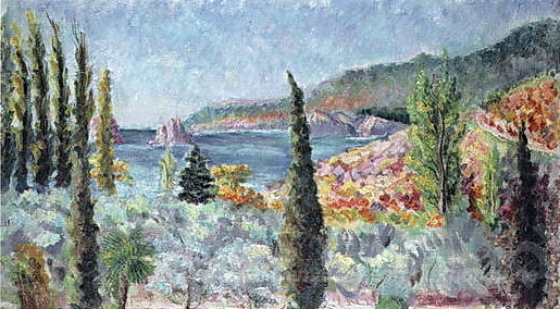 Wir bieten Ihnen eine handgefertigte Reproduktion auf Leinwand des berühmten Kunstwerks 'Küste der Krim' von Ilya Mashkov, aus dem Reproduktionsmuseum.
