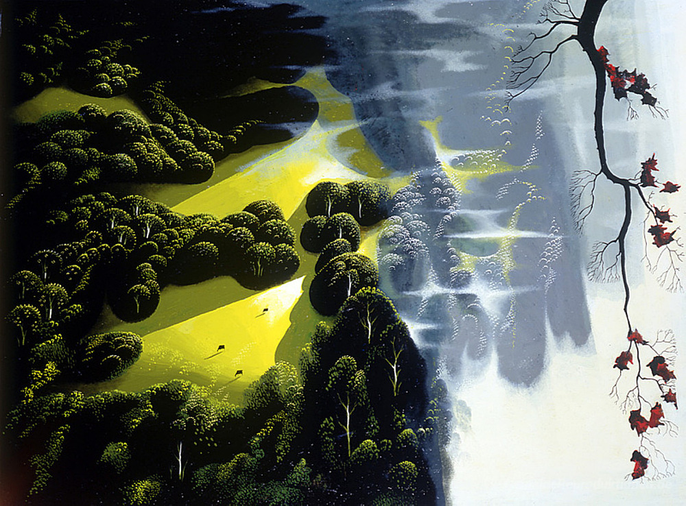 Wir bieten Ihnen eine handgefertigte Reproduktion auf Leinwand des berühmten Kunstwerks 'Küsten-Wildnis' von Eyvind Earle, aus dem Reproduktionsmuseum.