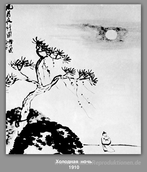 Wir bieten Ihnen eine handgefertigte Reproduktion auf Leinwand des berühmten Kunstwerks 'Kalte Nacht' von Qi Baishi, aus dem Reproduktionsmuseum.