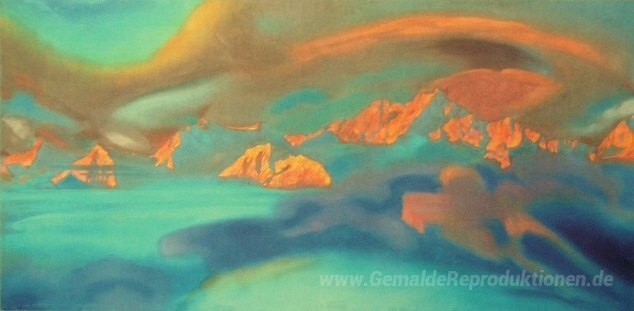 Wir bieten Ihnen eine handgefertigte Reproduktion auf Leinwand des berühmten Kunstwerks 'Kangchenjunga' von Nicholas Roerich, aus dem Reproduktionsmuseum.