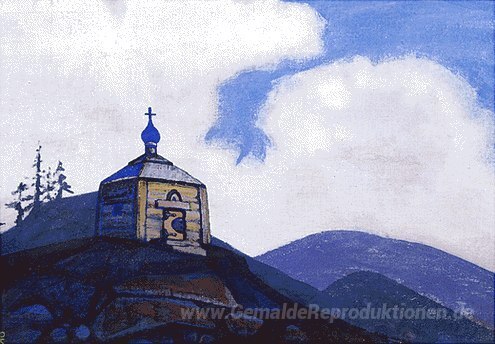 Wir bieten Ihnen eine handgefertigte Reproduktion auf Leinwand des berühmten Kunstwerks 'Kapelle St. Sergius an der Kreuzung' von Nicholas Roerich, aus dem Reproduktionsmuseum.