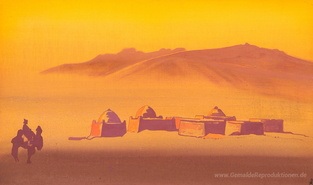 Wir bieten Ihnen eine handgefertigte Reproduktion auf Leinwand des berühmten Kunstwerks 'Kara-Kirghizians' von Nicholas Roerich, aus dem Reproduktionsmuseum.