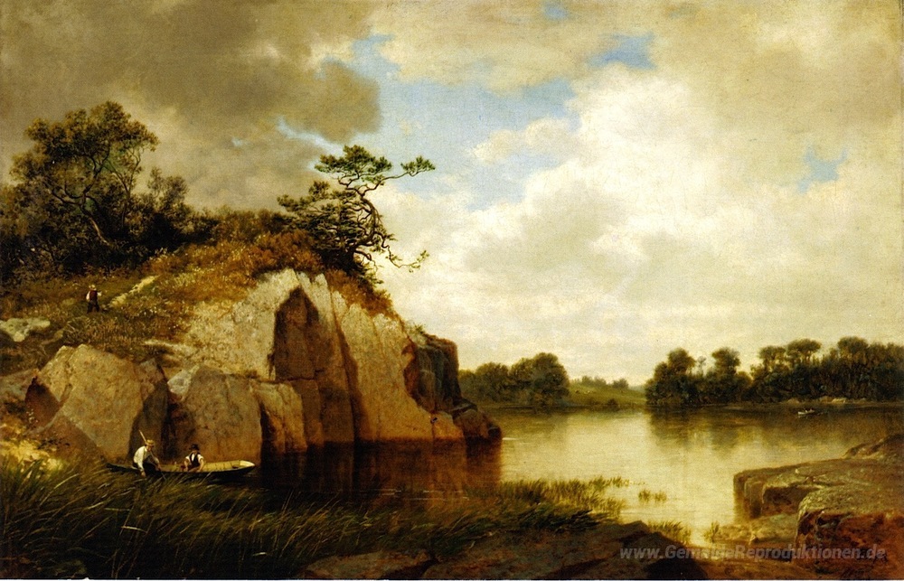Wir bieten Ihnen eine handgefertigte Reproduktion auf Leinwand des berühmten Kunstwerks 'Katzenminze Island, in der Nähe von Greenwih, CT' von David Johnson, aus dem Reproduktionsmuseum.