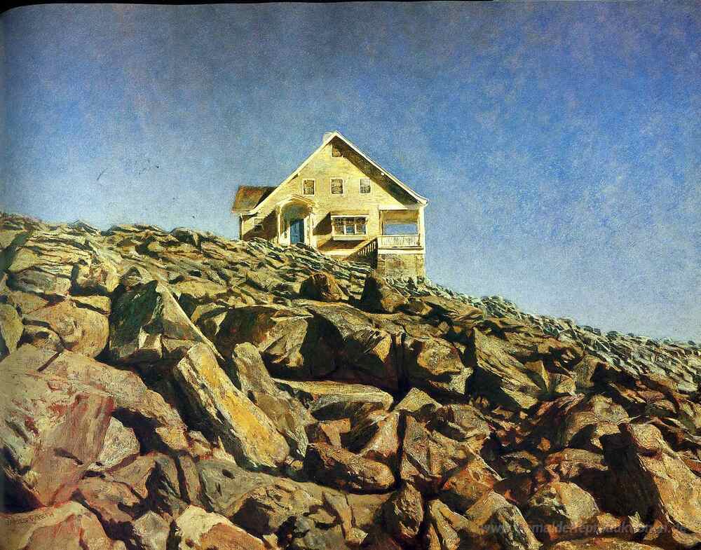 Wir bieten Ihnen eine handgefertigte Reproduktion auf Leinwand des berühmten Kunstwerks 'Kent House' von Jamie Wyeth, aus dem Reproduktionsmuseum.
