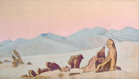 Wir bieten Ihnen eine handgefertigte Reproduktion auf Leinwand des berühmten Kunstwerks 'Kereksury' von Nicholas Roerich, aus dem Reproduktionsmuseum.