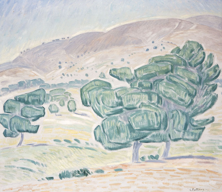 Wir bieten Ihnen eine handgefertigte Reproduktion auf Leinwand des berühmten Kunstwerks 'Kiefer' von Konstantinos Parthenis, aus dem Reproduktionsmuseum.
