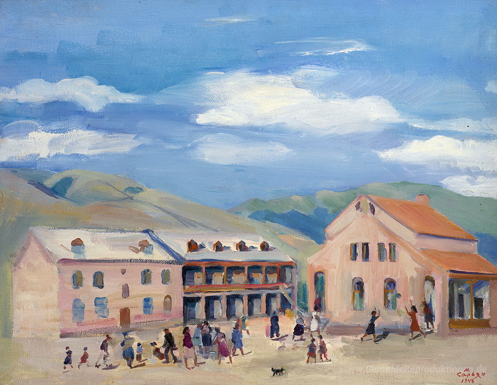 Wir bieten Ihnen eine handgefertigte Reproduktion auf Leinwand des berühmten Kunstwerks 'Kirovakan Dorf' von Martiros Saryan, aus dem Reproduktionsmuseum.
