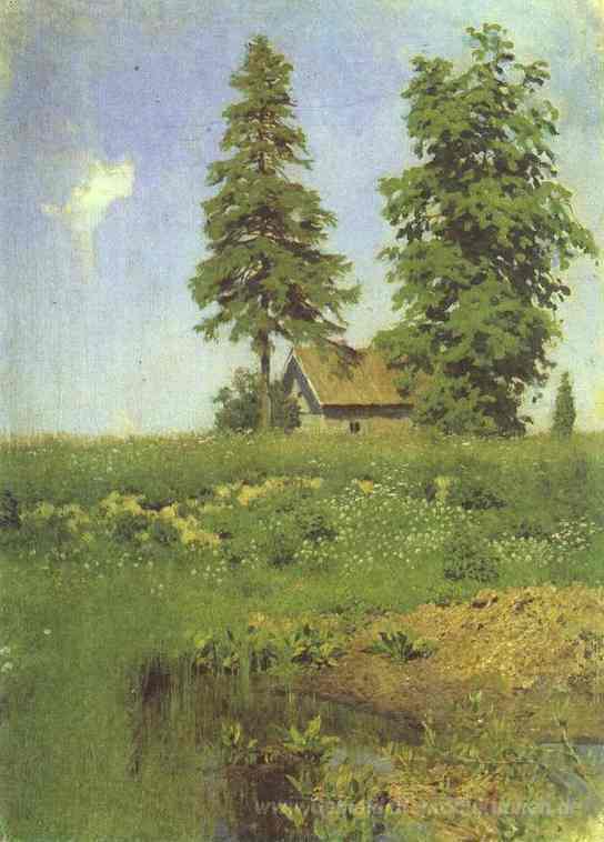 Wir bieten Ihnen eine handgefertigte Reproduktion auf Leinwand des berühmten Kunstwerks 'Kleine Hütte in einer Wiese' von Isaac Levitan, aus dem Reproduktionsmuseum.
