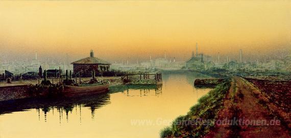 Die kunstvollen Techniken, die Grimshaw anwendet, schaffen eine unverwechselbare Stimmung, die den Betrachter in ihren Bann zieht. Knostrop Cut, Leeds, Sunday Night fängt die Magie eines nächtlichen Szenarios ein und bringt die Atmosphäre des Raumes, in dem es präsentiert wird, zum Leben. Die harmonische Verbindung von Licht und Schatten verwandelt jeden Raum in eine Oase von Kunst und Eleganz. Lassen Sie sich von der Schönheit dieser Meisterwerke inspirieren und verleihen Sie Ihrem Zuhause einen Hauch von zeitloser Kunst.