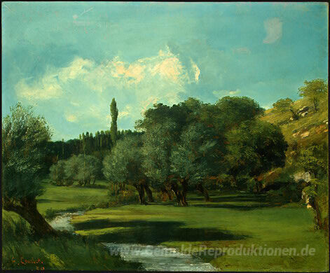 Wir bieten Ihnen eine handgefertigte Reproduktion auf Leinwand des berühmten Kunstwerks 'La Bretonnerie in der Abteilung von Indre' von Gustave Courbet, aus dem Reproduktionsmuseum.