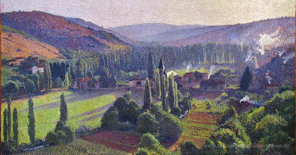 Wir bieten Ihnen eine handgefertigte Reproduktion auf Leinwand des berühmten Kunstwerks 'Labastide du Vert in Marquayrol' von Henri Martin, aus dem Reproduktionsmuseum.