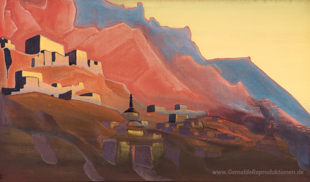 Wir bieten Ihnen eine handgefertigte Reproduktion auf Leinwand des berühmten Kunstwerks 'Ladakh. Sonnenuntergang.' von Nicholas Roerich, aus dem Reproduktionsmuseum.