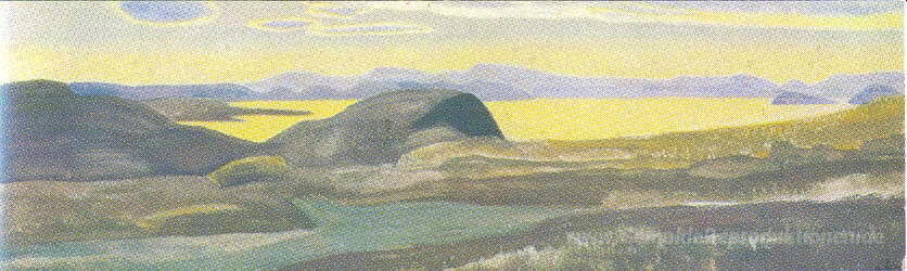 Wir bieten Ihnen eine handgefertigte Reproduktion auf Leinwand des berühmten Kunstwerks 'Ladoga' von Nicholas Roerich, aus dem Reproduktionsmuseum.