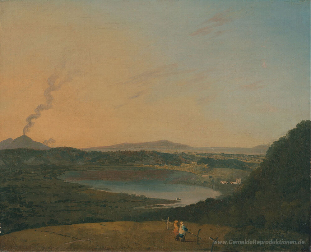 Wir bieten Ihnen eine handgefertigte Reproduktion auf Leinwand des berühmten Kunstwerks 'Lago d'Agnano mit dem Vesuv in der Ferne' von Richard Wilson, aus dem Reproduktionsmuseum.