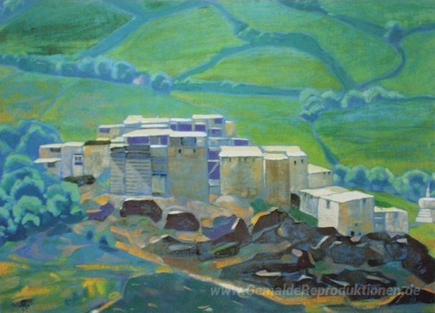 Wir bieten Ihnen eine handgefertigte Reproduktion auf Leinwand des berühmten Kunstwerks 'Lahaul. Kardang.' von Nicholas Roerich, aus dem Reproduktionsmuseum.