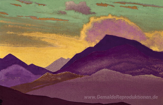 Wir bieten Ihnen eine handgefertigte Reproduktion auf Leinwand des berühmten Kunstwerks 'Lahaul' von Nicholas Roerich, aus dem Reproduktionsmuseum.