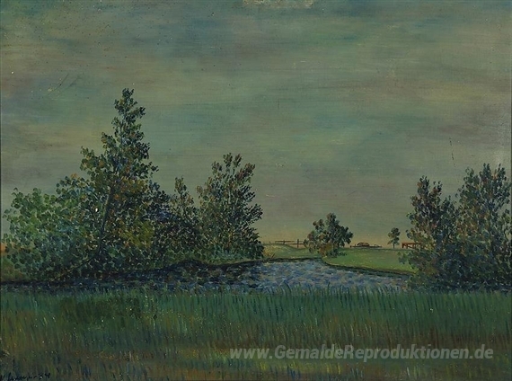 Wir bieten Ihnen eine handgefertigte Reproduktion auf Leinwand des berühmten Kunstwerks 'Landschaft aus Liminka' von Vilho Lampi, aus dem Reproduktionsmuseum.