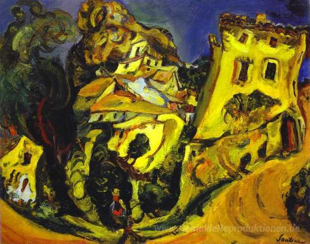 Wir bieten Ihnen eine handgefertigte Reproduktion auf Leinwand des berühmten Kunstwerks 'Landschaft bei Cagnes (La Gaude)' von Chaim Soutine, aus dem Reproduktionsmuseum.