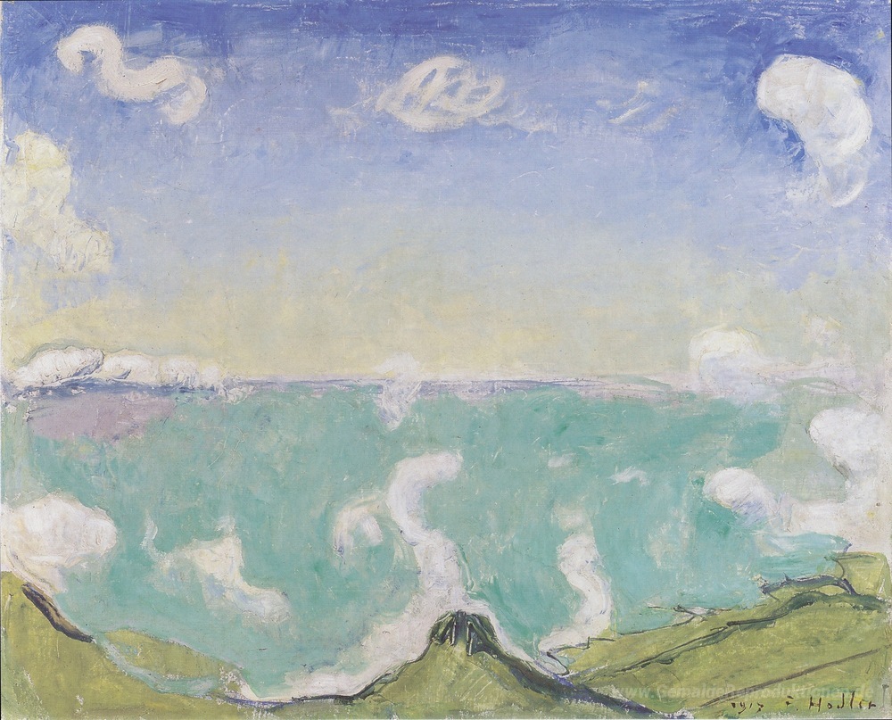 Wir bieten Ihnen eine handgefertigte Reproduktion auf Leinwand des berühmten Kunstwerks 'Landschaft bei Caux mit zunehmender Wolken' von Ferdinand Hodler, aus dem Reproduktionsmuseum.