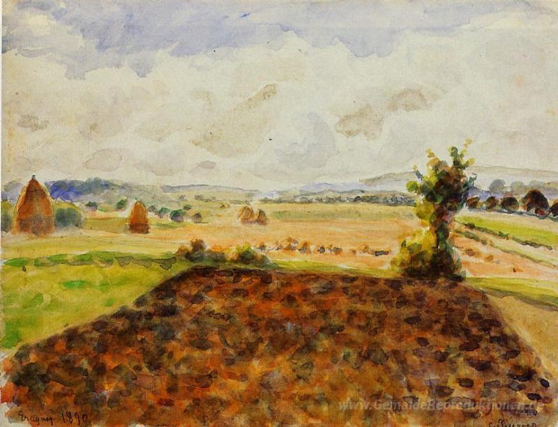 Wir bieten Ihnen eine handgefertigte Reproduktion auf Leinwand des berühmten Kunstwerks 'Landschaft bei Eragny, Wetter' von Camille Pissarro, aus dem Reproduktionsmuseum.