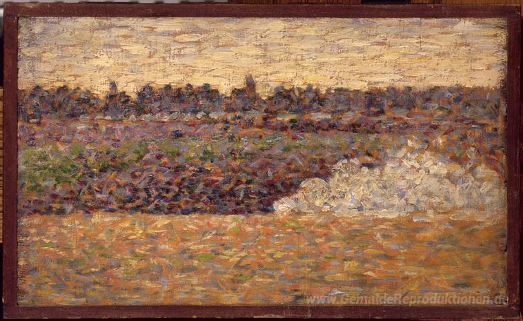 Wir bieten Ihnen eine handgefertigte Reproduktion auf Leinwand des berühmten Kunstwerks 'Landschaft bei Grand' von Georges Seurat, aus dem Reproduktionsmuseum.