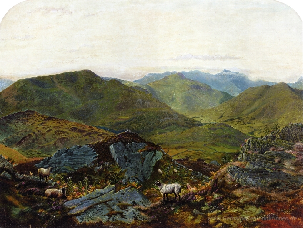 Wir bieten Ihnen eine handgefertigte Reproduktion auf Leinwand des berühmten Kunstwerks 'Landschaft im Lake District' von John Atkinson Grimshaw, aus dem Reproduktionsmuseum.