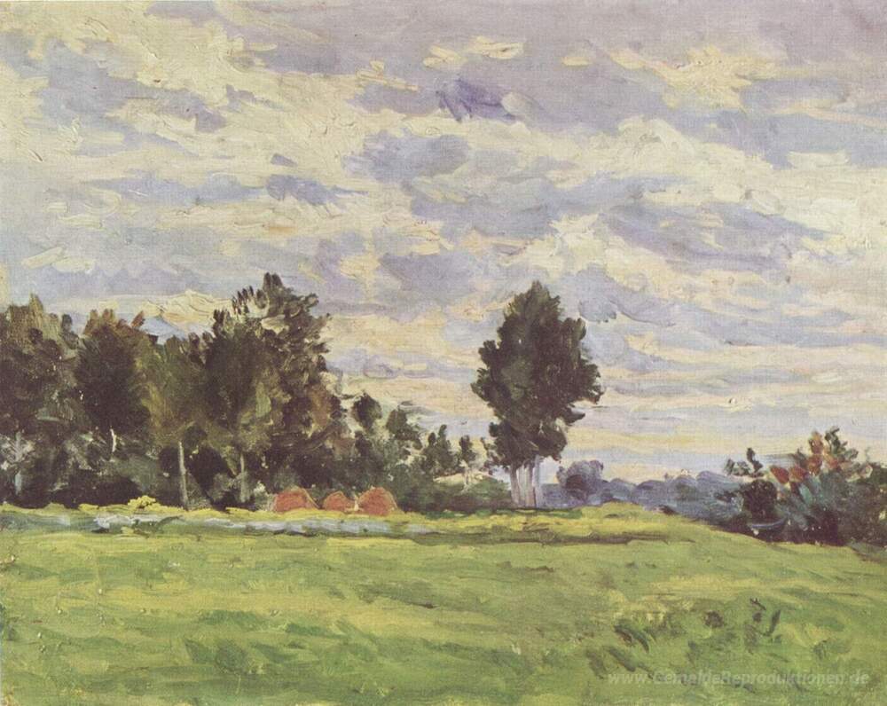 Wir bieten Ihnen eine handgefertigte Reproduktion auf Leinwand des berühmten Kunstwerks 'Landschaft in der Ile de France' von Paul Cezanne, aus dem Reproduktionsmuseum.