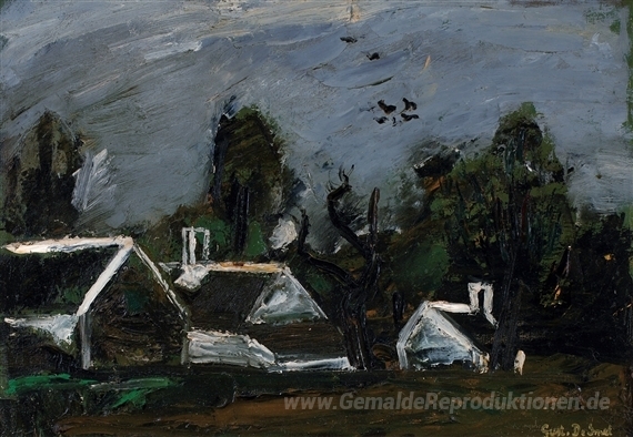 Wir bieten Ihnen eine handgefertigte Reproduktion auf Leinwand des berühmten Kunstwerks 'Landschaft mit Bauernhäuser' von Gustave de Smet, aus dem Reproduktionsmuseum.