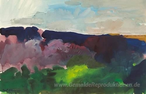 Wir bieten Ihnen eine handgefertigte Reproduktion auf Leinwand des berühmten Kunstwerks 'Landschaft mit blühenden Obstgarten' von Paul Wonner, aus dem Reproduktionsmuseum.