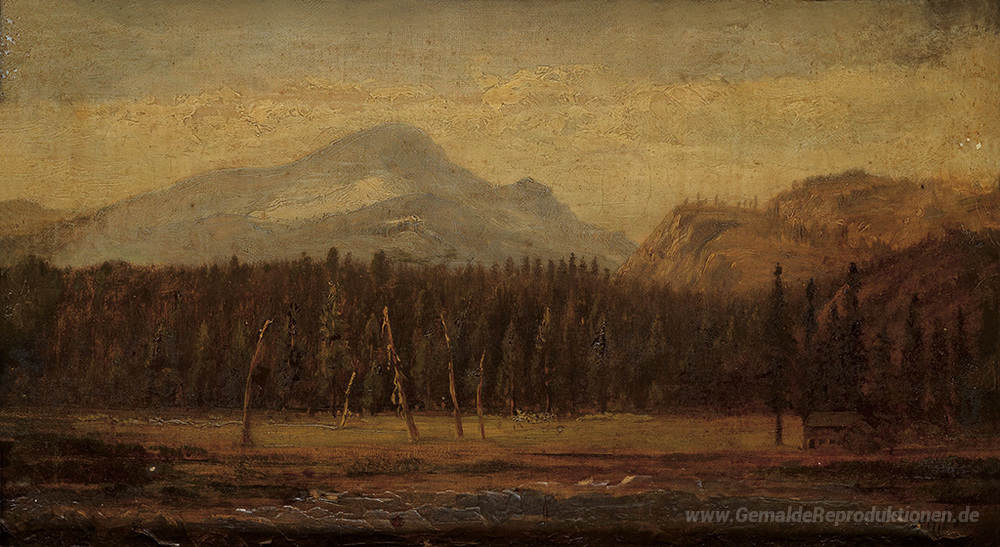 Wir bieten Ihnen eine handgefertigte Reproduktion auf Leinwand des berühmten Kunstwerks 'Landschaft mit einem Haus Frontier' von Thomas Hill, aus dem Reproduktionsmuseum.
