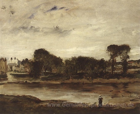 Wir bieten Ihnen eine handgefertigte Reproduktion auf Leinwand des berühmten Kunstwerks 'Landschaft mit Fluss' von Mihaly Munkacsy, aus dem Reproduktionsmuseum.