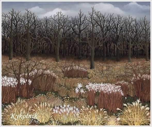 Wir bieten Ihnen eine handgefertigte Reproduktion auf Leinwand des berühmten Kunstwerks 'Landschaft mit Gras' von Ivan Generalic, aus dem Reproduktionsmuseum.