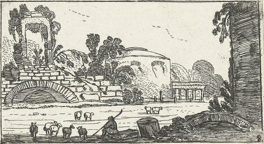 Wir bieten Ihnen eine handgefertigte Reproduktion auf Leinwand des berühmten Kunstwerks 'Landschaft mit Ruinen und Hirten mit Schafen' von Esaias van de Velde, aus dem Reproduktionsmuseum.