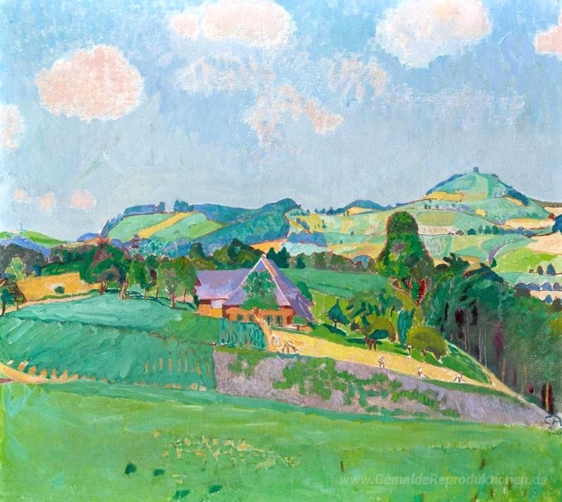 Wir bieten Ihnen eine handgefertigte Reproduktion auf Leinwand des berühmten Kunstwerks 'Landschaft nahe Oschwand' von Cuno Amiet, aus dem Reproduktionsmuseum.